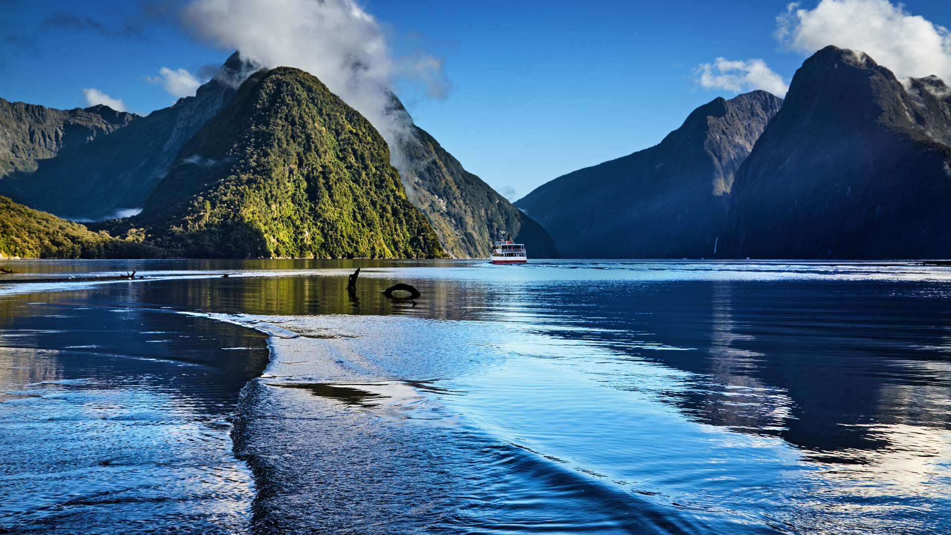 - Milford Sound option: Fjord reflections, waterfalls, mist and dramatic vertical cliffs